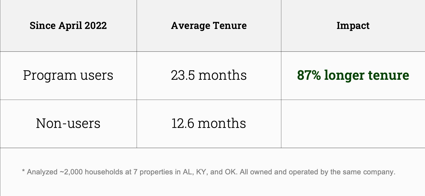 Rent Loan borrowers stay almost a full year longer than other renters because they get help early—before they might have been forced to leave their home.